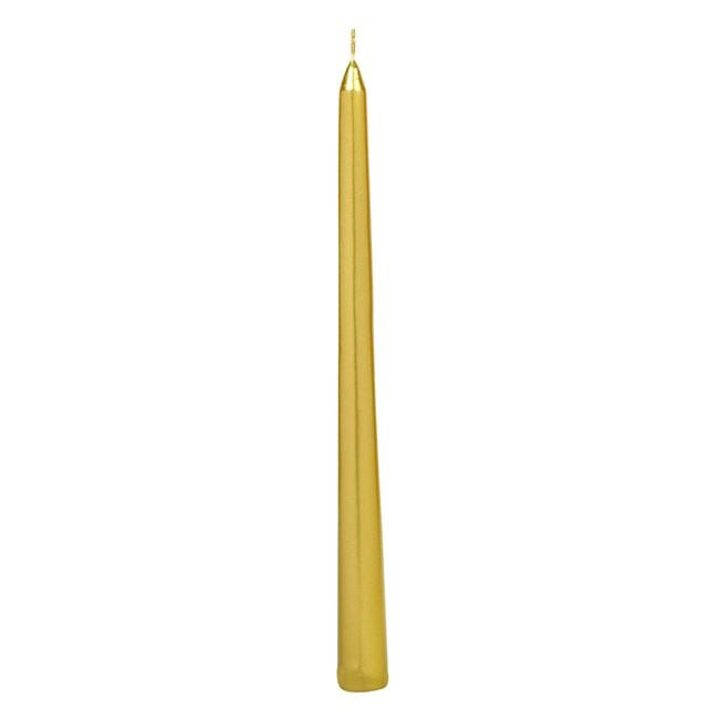 Elegáns, arany színű dekoratív gyertya, amely tökéletesen illik bármilyen szabványos gyertyatartóba.