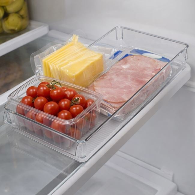 Praktikus átlátszó hűtőszekrény rendszerező doboz, amely segít rendet tartani konyhájában. A kialakításának és a kényelmes fogantyúnak köszönhetően a kisebb csomagok és élelmiszerek könnyen átláthatóvá válnak, így gyors hozzáférést biztosít a keresett alapanyagokhoz.