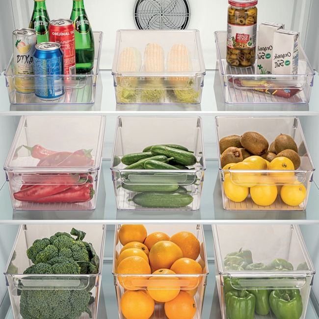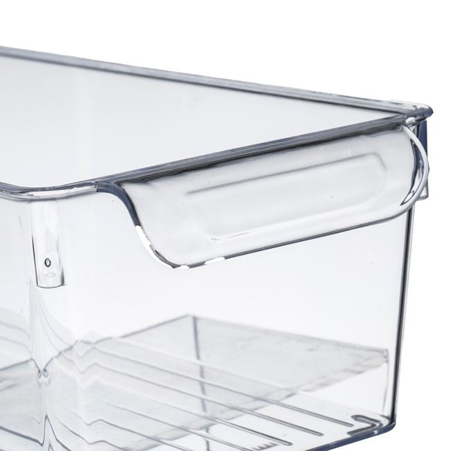 Tegye átláthatóbbá és rendezettebbé hűtőszekrényét ezzel a praktikus, átlátszó műanyag tároló dobozzal. A beépített fogantyúnak köszönhetően a doboz könnyen mozgatható, így gyors hozzáférést biztosít a benne tárolt élelmiszerekhez.