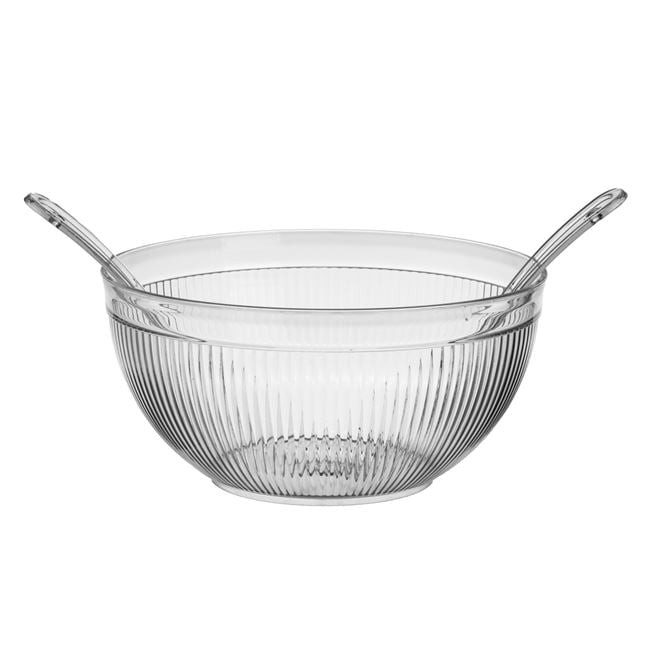 Stílusos és praktikus műanyag salátástál, amely ideális választás családi ebédekhez vagy kerti partikhoz. A tál tartós, BPA-mentes műanyagból készült, elegáns csíkos mintázattal díszítve, amely modern megjelenést kölcsönöz a terített asztalnak.