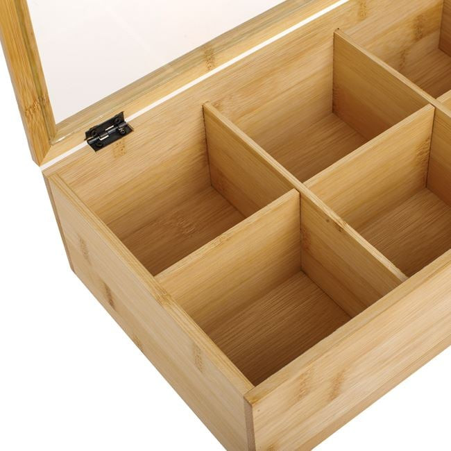 Rendszerezze kedvenc teafiltereit ebben a stílusos, kiváló minőségű bambuszból készült teatartó dobozban. A természetes megjelenésű tároló nemcsak praktikus kiegészítője a konyhának, hanem dekoratív eleme is az étkezőasztalnak.