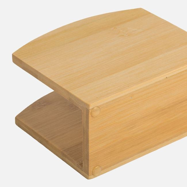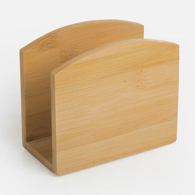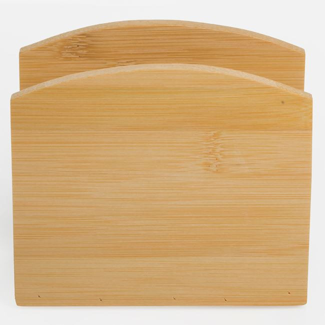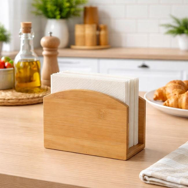 Ellenálló bambuszból készült, amelynek gyönyörű, természetes rostjai környezetbarát megjelenést kölcsönöznek otthonának. Minimalista dizájnja, elegáns ívei és tiszta vonalai révén ideális választás rusztikus, modern vagy skandináv stílusú konyhákba egyaránt. A nyitott kialakítás lehetővé teszi a szalvéták könnyű elhelyezését és elérését, miközben azokat mindig függőlegesen és rendezetten tartja. A kompakt talp stabilitást biztosít bármilyen felületen, csúszkálás nélkül.