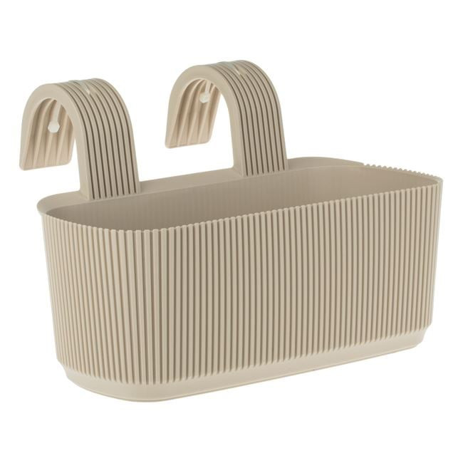 A láda speciális kialakításának köszönhetően stabilan rögzíthető: kiegészítő rögzítőgyűrűkkel és az alján található 2 darab csúsztatható klipsszel rendelkezik, amelyek biztosítják, hogy a kaspó szilárdan álljon a korláton. Ideális kerek, ívelt vagy négyszögletes korlátokhoz, egészen 6 cm-es szélességig.
