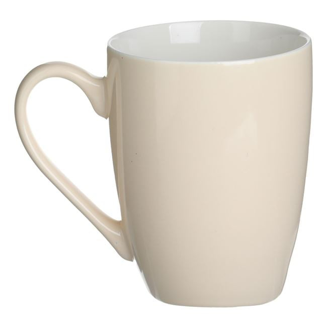 Élvezze kedvenc frissítőjét ebből az elegáns, ovális formájú kerámia bögréből. A termék különlegessége a kifinomult bézs külső és a tiszta fehér belső kontrasztja, amelyet egy esztétikus, fehér színű, dombornyomott "Coffee" felirat tesz teljessé.