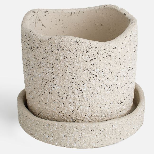 Elegáns megjelenésű, krém színű kerámia kaspó, amely különleges homokfúvott hatású felülettel és stílusos hullámos szegéllyel rendelkezik. A szetthez tartozik egy azonos dizájnnal készült alátét is, amely felfogja a felesleges vizet, így praktikus és esztétikus kiegészítője otthonának.