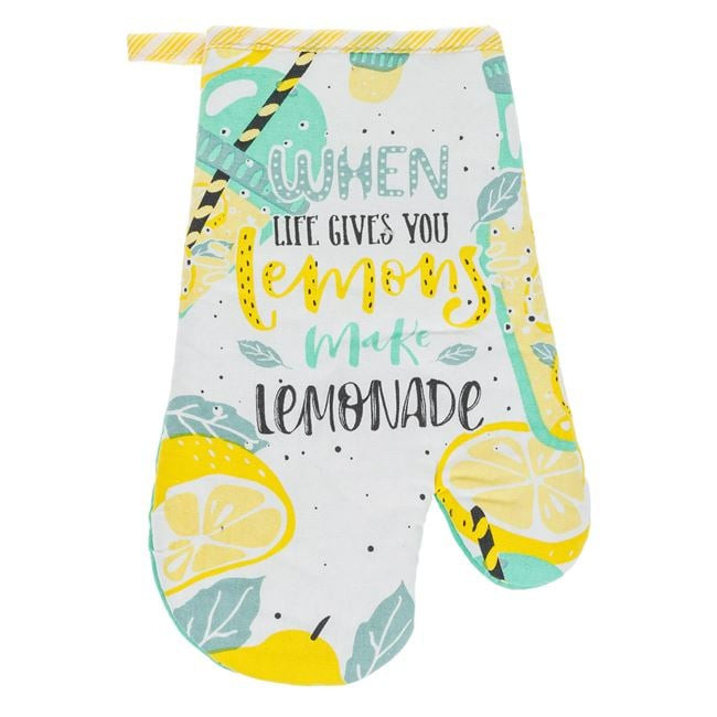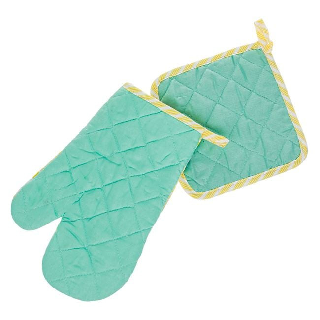 Tegye hangulatossá konyháját ezzel a vidám, citrom mintás konyhai textilszettel! A csomag egy praktikus konyhai kesztyűt és egy hozzáillő edényfogót tartalmaz, amelyek sárga és tengerzöld színeikkel frissességet sugároznak.