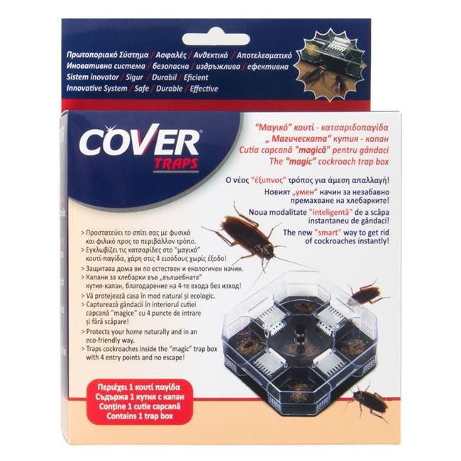 A csapda működési elve egyszerű: a csótányokat a csalétek a doboz belsejébe vonzza, ahol a speciálisan kialakított 4 egyirányú bejáraton keresztül fogságba esnek, ahonnan nincs kimenet.