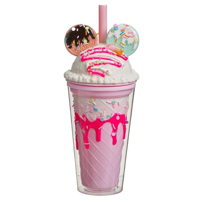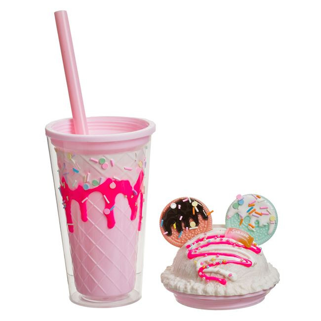 Varázsolja élvezetessé a frissítő italok fogyasztását ezzel a különleges, duplafalú műanyag pohárral! A pohár nemcsak praktikus, hanem rendkívül stílusos is: a falak között és a fedélen látványos jégkása és fagylalt motívumok találhatók, a tetejét pedig guszta keksz és színes szirup díszíti.