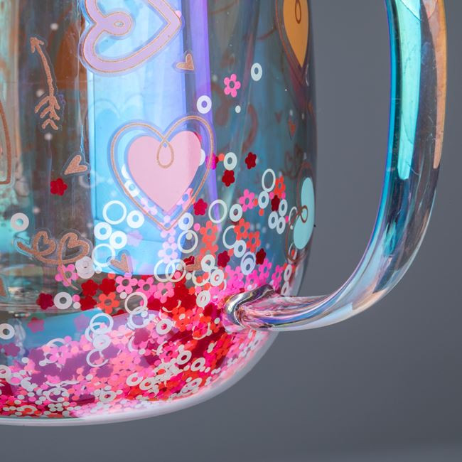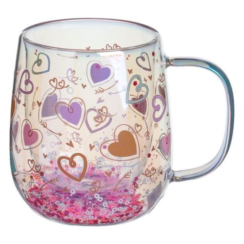 Varázsolja különlegessé a reggeli kávézást vagy a délutáni teázást ezzel az egyedi megjelenésű, duplafalú üveg bögrével! A pohár falai között játékos neon szívecskék, valamint rózsaszín, piros és fehér konfettik találhatók, amelyek minden kortyot élménnyé tesznek.