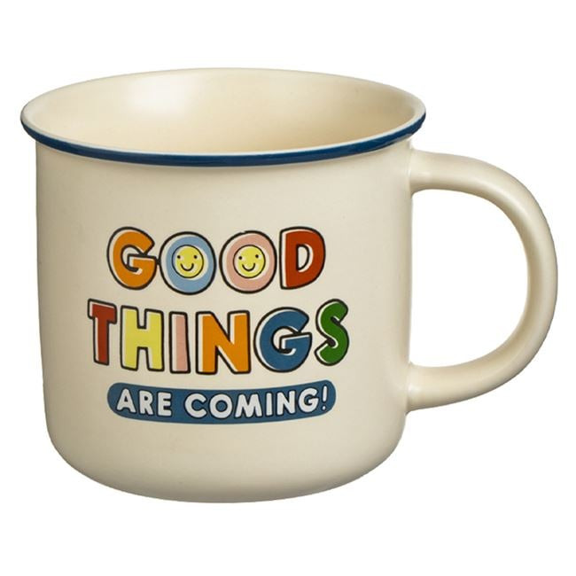 Stílusos, egyenes falú, krém színű New Bone porcelán bögre, amelyet színes perem és vidám, inspiráló üzenetek tesznek különlegessé. Tökéletes választás a reggeli kávéhoz vagy teához, de ajándéknak is kiváló.