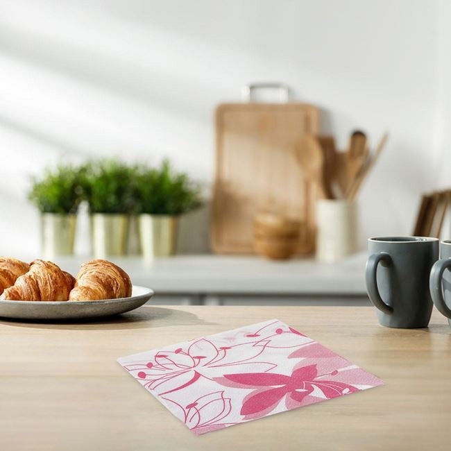 Tegye különlegessé az étkezéseket ezzel az elegáns, fukszia virágmintás szalvéta csomaggal. A csomag 80 darab fehér alapszínű, 1 rétegű papírszalvétát tartalmaz, amelyeket stílusos virágmotívumok díszítenek. Kiváló választás családi eseményekhez, kerti partikhoz vagy mindennapi használatra.