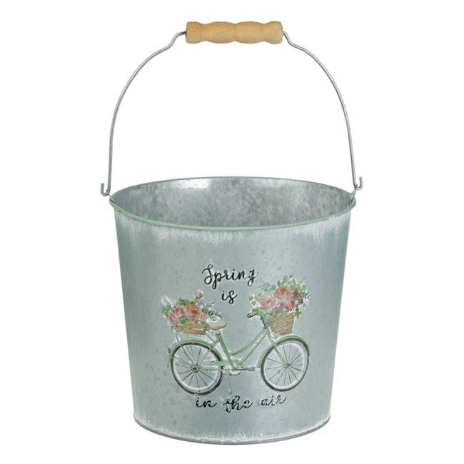 Varázsolja különlegessé otthonát ezzel az elegáns, ezüstszínű fém kaspóval, amelyet bájos rózsaszín virágok és egy antik stílusú kerékpár rajza díszít. A kaspón látható "Spring is in the air" felirat igazi tavaszi hangulatot áraszt az év bármely szakában.
