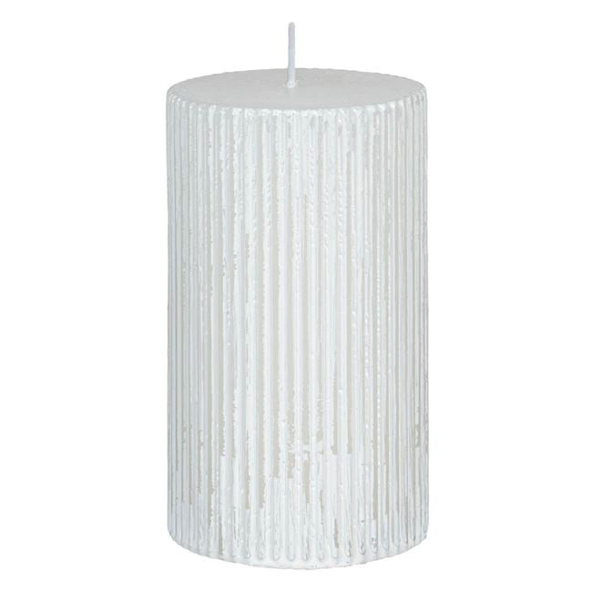 Dekoratív, fehér színű, „brushed” (kefélt) felületű csíkos hengergyertya, amely elegáns megjelenésével bármely helyiség tökéletes dísze lehet. A gyertya illatmentes, így érzékenyek számára vagy étkezőasztalra is kiváló választás.