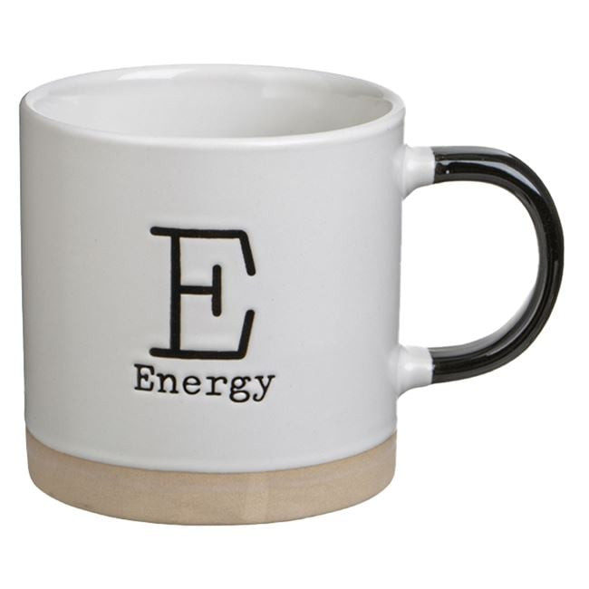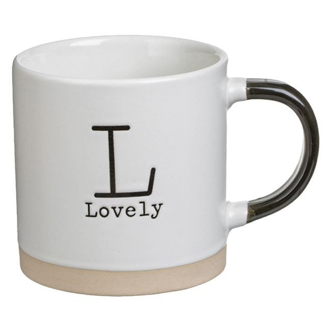 Stílusos, egyenes falú fehér kerámia bögre, amely kifinomult megjelenését az alján található bézs sávnak és az elegáns fekete fülnek köszönheti. A bögre háromféle inspiráló felirattal érhető el: „L” mint Lovely, „E” mint Energy vagy „G” mint Grateful.