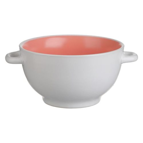 Stílusos és praktikus kerámia leveses tál, amely ideális választás mindennapi étkezésekhez vagy vendégváráshoz. A tálka elegáns fehér külsővel rendelkezik, míg belseje élénk korall színű, fehér peremmel díszítve.
