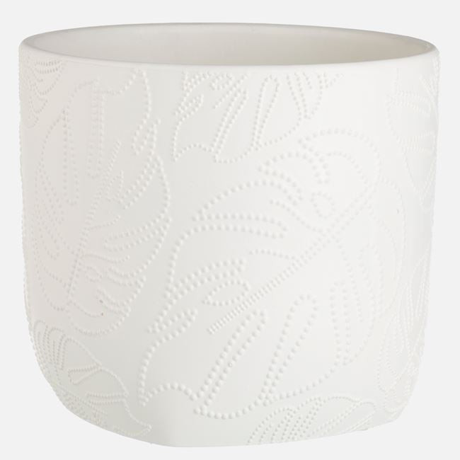 Tegye különlegessé növényeit ezzel az elegáns, fehér színű dombornyomott kaspóval. A kaspó kifinomult textúrája és klasszikus formája bármely stílusú otthonba vagy irodába tökéletesen illeszkedik.