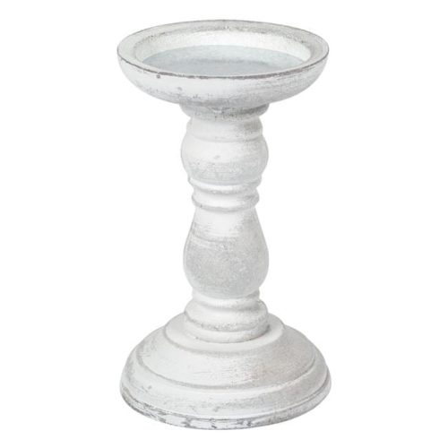 Elegáns, fehér színű dekoratív gyertyatartó, amely különleges, kréta hatású felülettel és faragott nyakrésszel rendelkezik. Ez a stílusos kiegészítő tökéletes választás a vintage vagy klasszikus lakberendezési stílus kedvelőinek.
