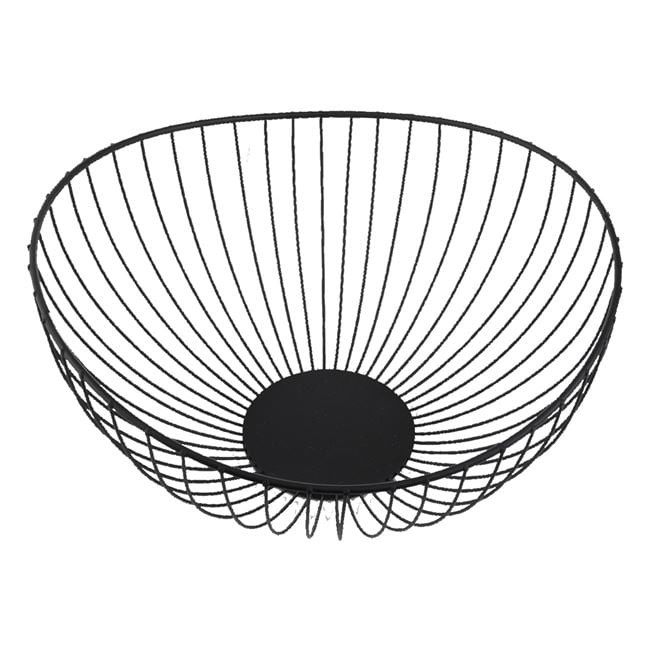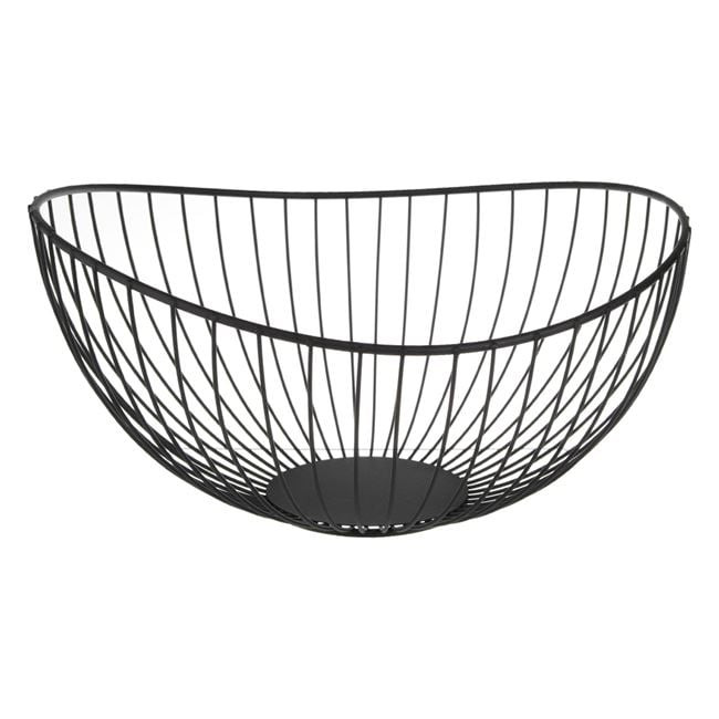 Stílusos és modern megjelenésű, fekete fém gyümölcskosár, amely elegáns dísze lehet konyhájának vagy étkezőjének. A tál különlegességét a hullámos felső szegély és a függőleges fémhuzalok találkozása adja, amely egyszerre biztosít légies megjelenést és stabil tartást a gyümölcsöknek.