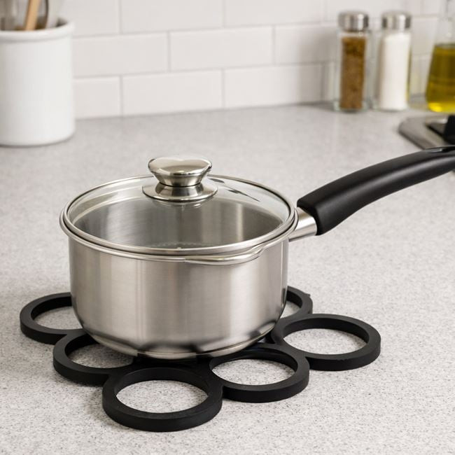 A szilikon anyagának köszönhetően az alátét csúszásmentes és könnyen tisztítható, így ideális választás forró edények, serpenyők vagy tepsik alá.