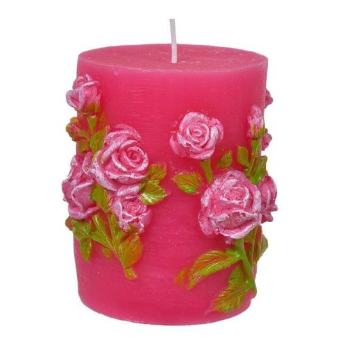 Varázsolja különlegessé az otthoni hangulatot ezzel az elegáns, fukszia színű, rózsa mintás gyertyával. A dekoratív megjelenés és a kellemes fény tökéletes választás bármilyen alkalomra, legyen szó egy pihentető estéről vagy ünnepi dekorációról.