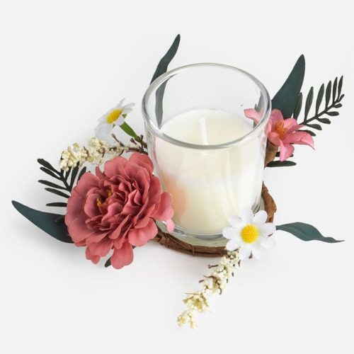 Gyertya szett virágkoszorúval