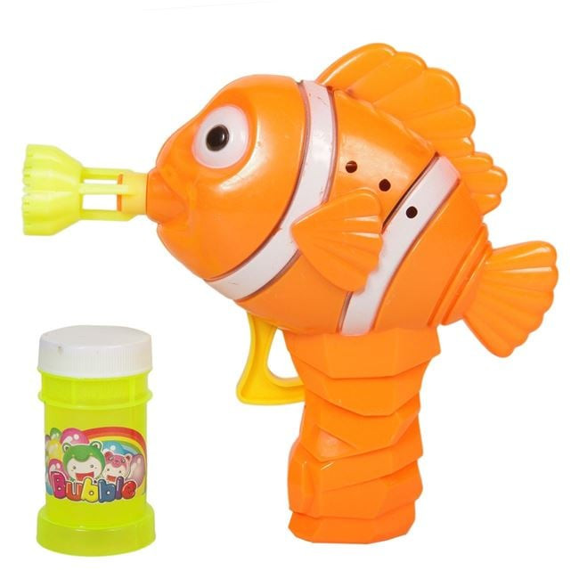 Varázsolja el gyermekét ezzel a mókás, halacska formájú buborékfújó pisztollyal! Ez a vidám narancssárga játék garantált szórakozást nyújt a szabadban és a lakásban egyaránt.
