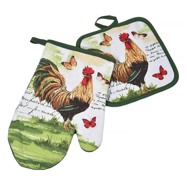 Tegye varázslatossá konyháját ezzel a kétrészes húsvéti konyhai textil szettel, mely egy 18x27 cm-es sütőkesztyűt és egy 18x18 cm-es edényfogó kendőt tartalmaz. A vidám tavaszi minta – kakasokkal és pillangókkal – igazi ünnepi hangulatot áraszt sütés-főzés közben.
