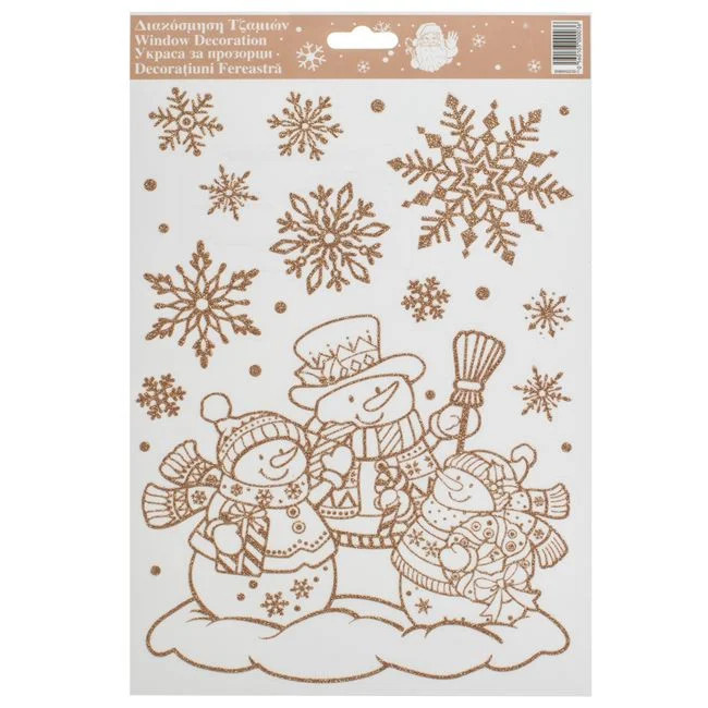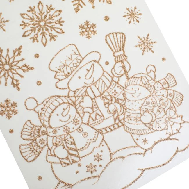 Karácsonyi Dekor Matrica Hóemberek Csillámos Bézs/Champagne 20x30cm