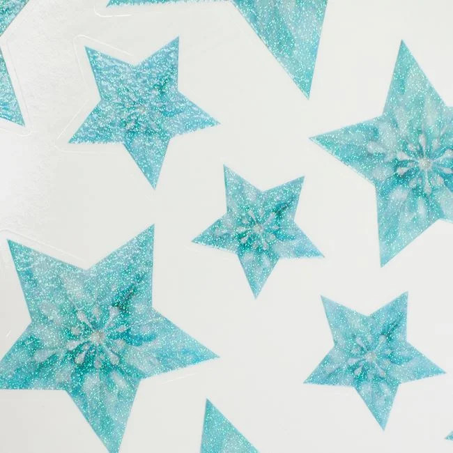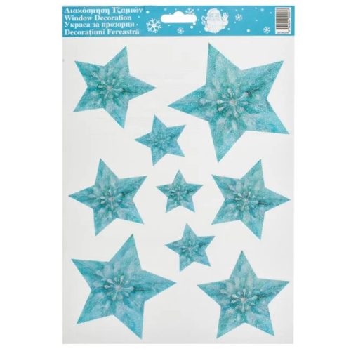 Karácsonyi Dekor Matrica – Holografikus Csillagok, Aqua, 20x30cm