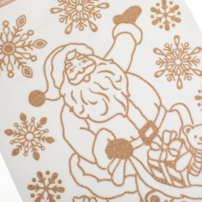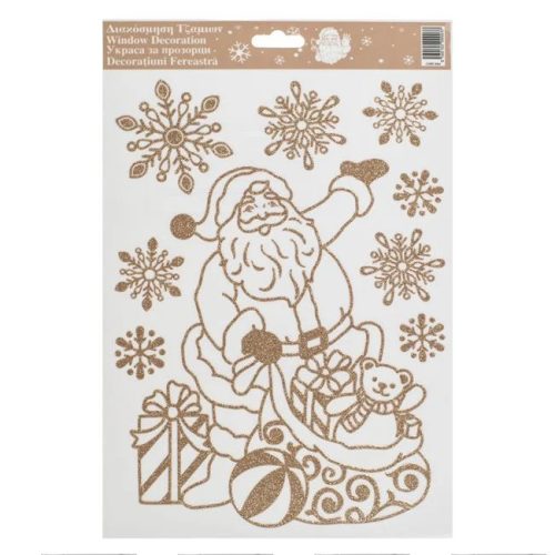Karácsonyi Dekor Matrica Mikulás és Hópelyhek Csillámos Bézs/Champagne 20x30cm