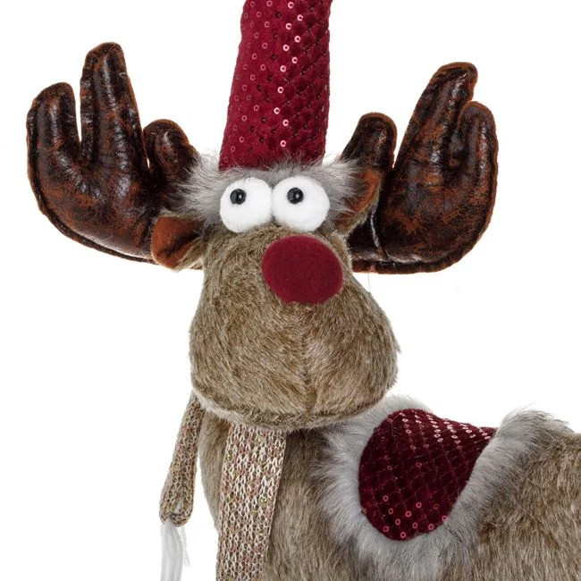 Karácsonyi Dekoráció – Barna Őz Bordó Sapkával 60cm