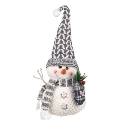 Karácsonyi Dekorációs Figura, Hóember Fehér-Szürke Sapkával és Sállal, 53 cm