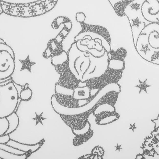 Karácsonyi Dekorációs Matrica Hóemberekkel és Mikulással, Ezüst Csillámos 30x42cm