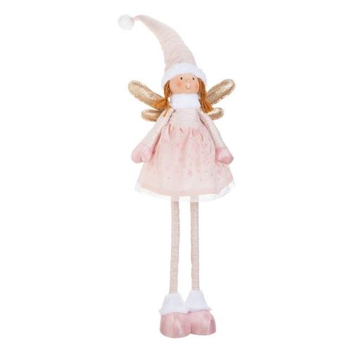Karácsonyi Tündér, Rózsaszín Ruhában, Kihúzható Lábakkal és LED-fénnyel, 100 cm