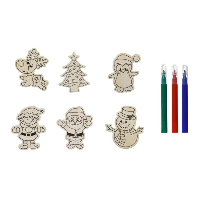 Karácsonyi Kreatív Készlet – Fa Figurák Mágnessel & Filctollakkal (6 db)