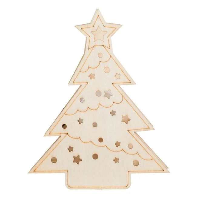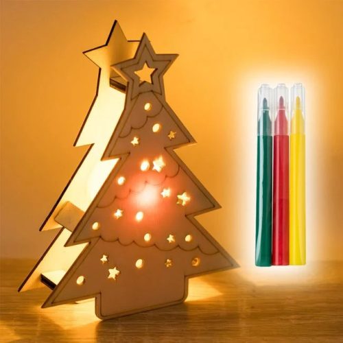 Karácsonyi Kreatív Készlet – Fa Karácsonyfa Világgal & 3 Filctoll (12x15 cm)