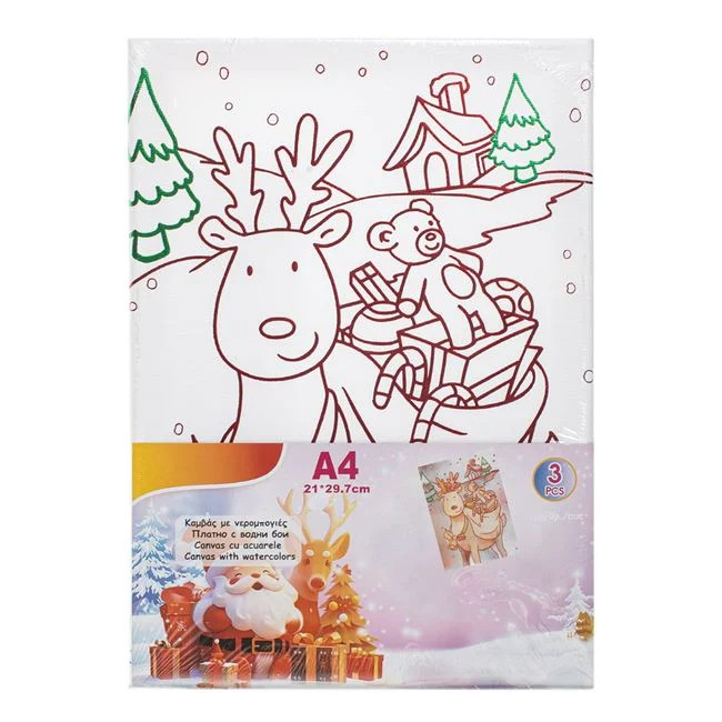 Karácsonyi Színező Készlet A4 Vászonnal – Ajándékos Rénszarvas & Akvarell – 3 db