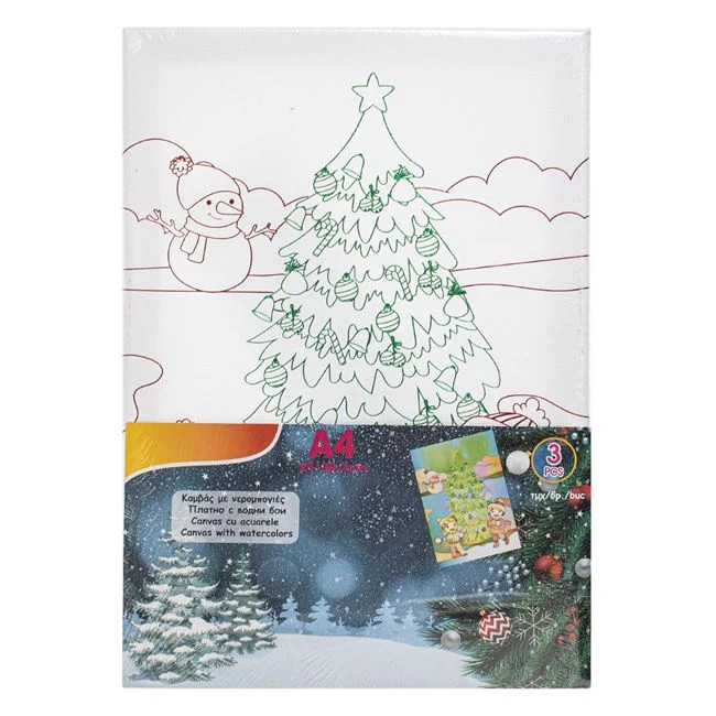Karácsonyi Színező Készlet A4 Vászonnal – Fenyőfa és Gyerekek & Akvarell – 3 db