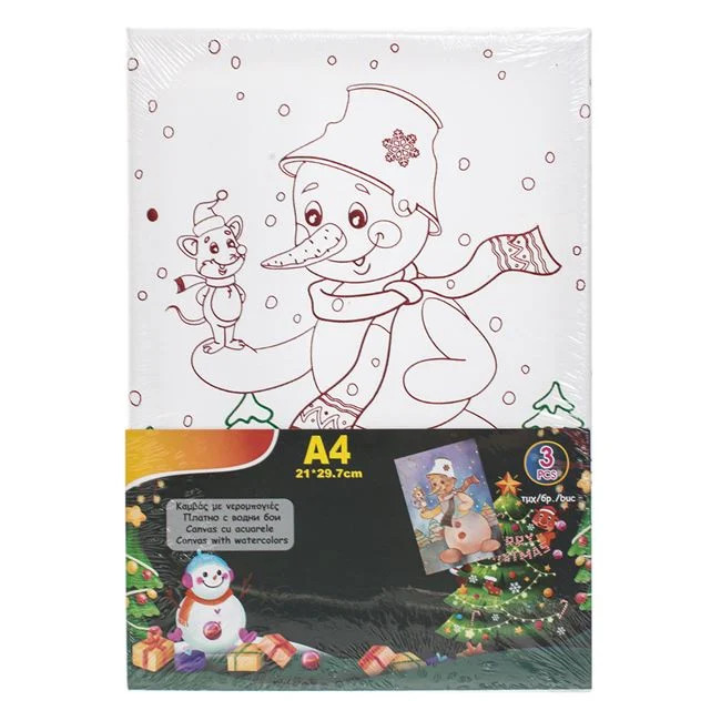 Karácsonyi Színező Készlet A4 Vászonnal – Hóember & Akvarell – 3 db