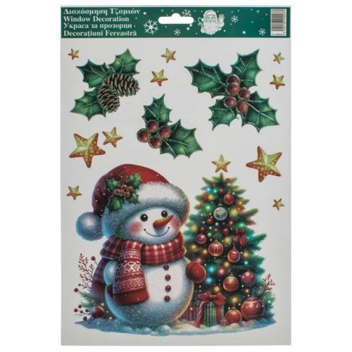 Karácsonyi dekor matricák karácsonyfával és hóemberrel, 20×30 cm