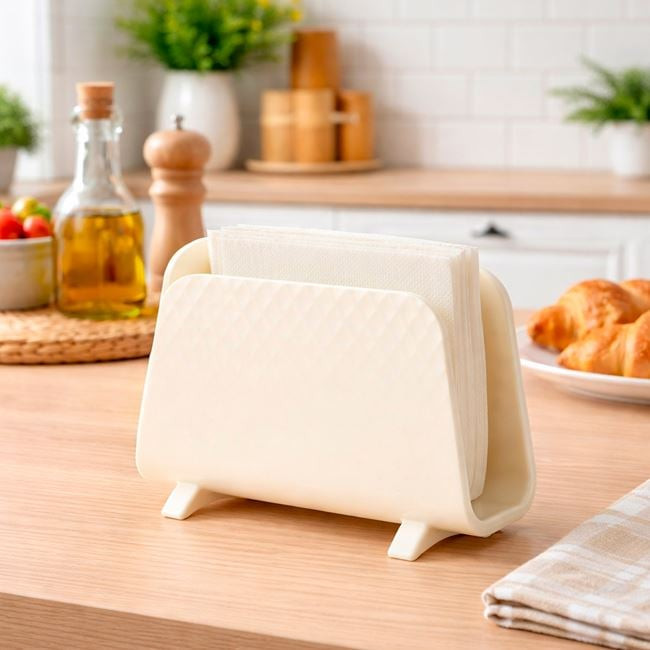 Emelje asztala esztétikáját ezzel a modern megjelenésű szalvétatartóval. Minimál stílusa és lágy krémszíne révén tökéletesen illeszkedik bármilyen környezetbe, a klasszikus konyháktól a legmodernebb étkezőkig.
