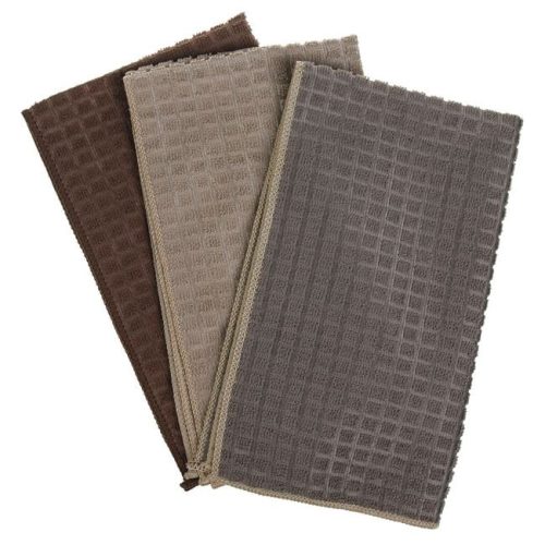 Ezek a kiváló minőségű mikroszálas konyharuhák rendkívüli nedvszívó képességgel rendelkeznek, így praktikus kiegészítői minden modern konyhának. A szett stílusos, dombornyomott kockás mintával érkezik, válogatott barna, bézs és taupe színekben, amelyek harmonikusan illeszkednek bármilyen lakberendezési stílushoz.