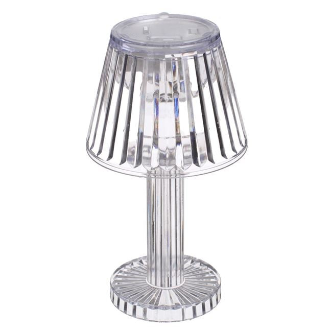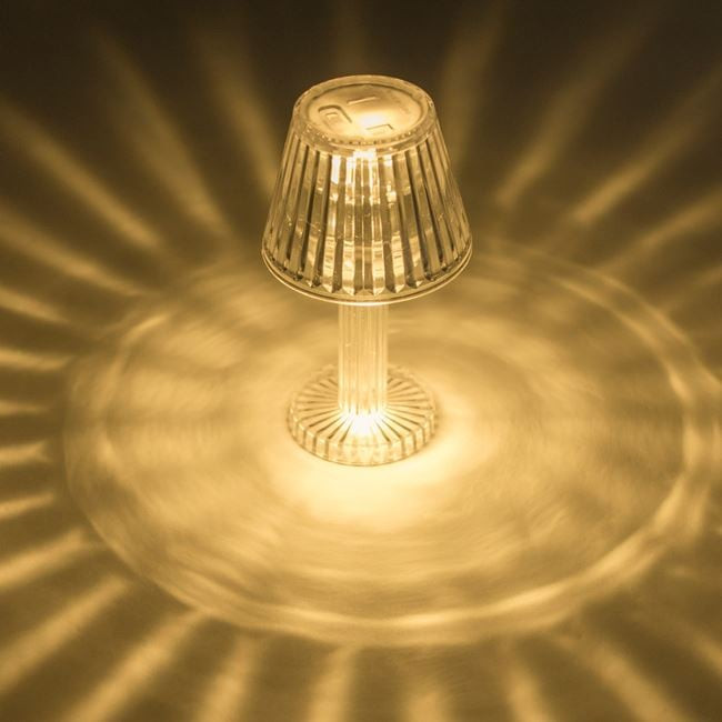 Elegáns megjelenésű, mini átlátszó éjjeli lámpa, amely dekoratív csíkozott talppal és búrával rendelkezik. A modern LED technológiának köszönhetően hangulatos fényt biztosít bármely helyiségben.