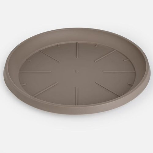 Stílusos és praktikus műanyag alátét virágcseréphez, elegáns mokka színben. Ez a tartós műanyagból készült tányér megvédi a felületeket a felesleges víztől és a kifolyó földtől, miközben modern megjelenést kölcsönöz növényeinek.