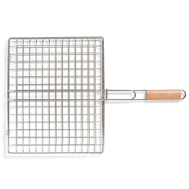 Ez a kisméretű négyzet alakú BBQ grillező rács ideális választás kisebb hússzeletekhez vagy zöldségek grillezéséhez. A rács kényelmes, 29 cm hosszú fanyéllel rendelkezik, amely biztonságos távolságot garantál a parázstól.
