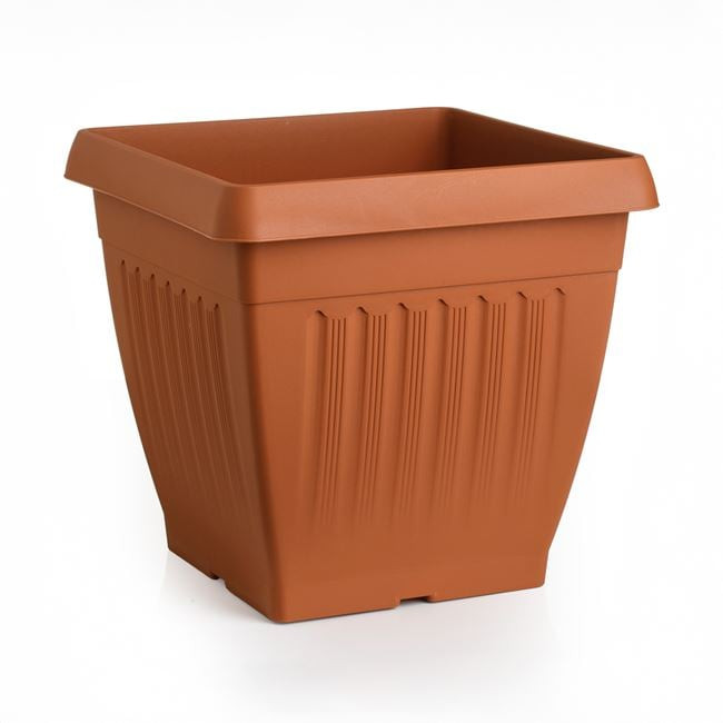 Tegye szebbé kertjét, teraszát vagy otthonát ezzel a tartós, négyzet alakú műanyag virágcseréppel. A termék esztétikus, dombornyomott mintázattal rendelkezik, amely klasszikus és elegáns megjelenést kölcsönöz a növényeknek.