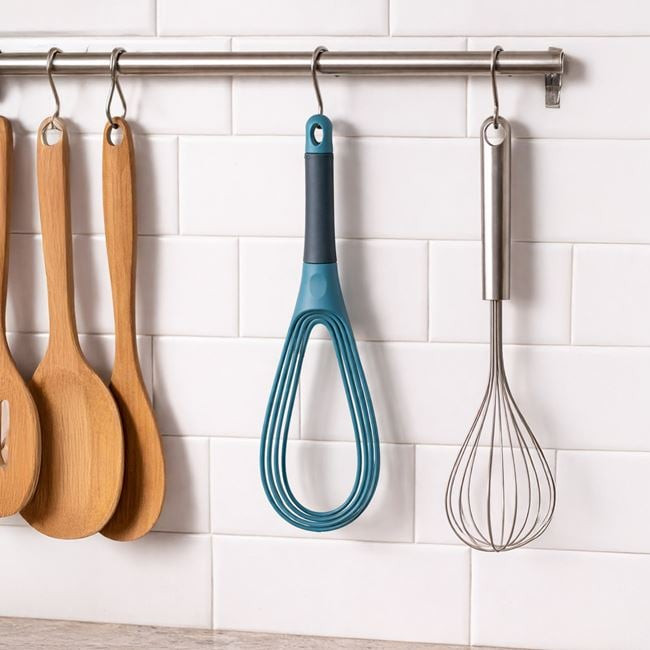 Ez az innovatív, összecsukható műanyag habverő tökéletes választás minden modern konyhába. A 29 cm-es cukrászati habverő különlegessége a forgatható nyélben rejlik, amely lehetővé teszi a szárak egyszerű nyitását és zárását. Helytakarékos kialakításának köszönhetően a fiókban is kényelmesen elfér.