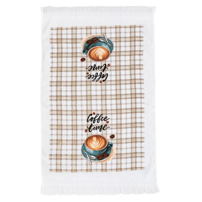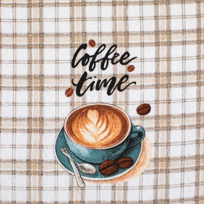 Tegye hangulatosabbá konyháját ezzel a kiváló minőségű, tiszta pamutból készült konyharuhával. A klasszikus fehér alapszínt egy stílusos kávéscsésze motívum és a népszerű „Coffee Time” felirat díszíti, amely minden kávéimádó konyhájába tökéletesen illik.