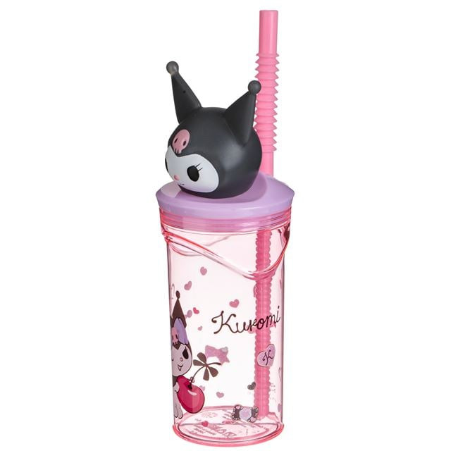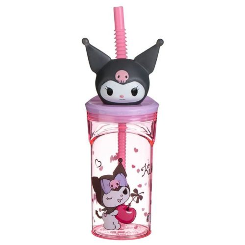 A pohár praktikus szívószállal rendelkezik, így útközben vagy az iskolában is kényelmesen használható. A fedélen található látványos 3D-s Kuromi díszítés garantáltan feldobja a napodat!