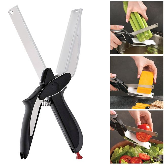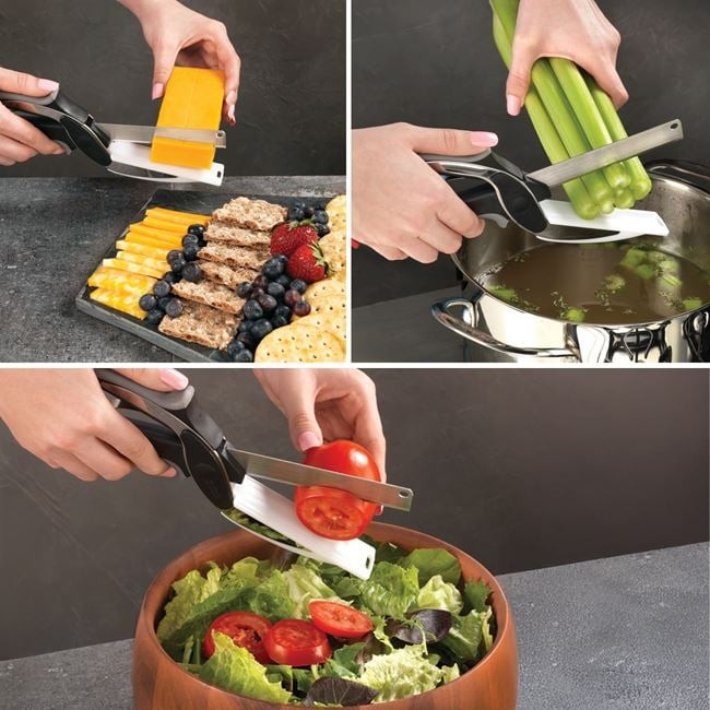 Változtassa gyerekjátékká a konyhai előkészületeket ezzel az intelligens konyhai ollóval! Ez a többfunkciós eszköz egyesíti egy éles kés és egy vágódeszka előnyeit, így közvetlenül az edénybe vagy a tálba szeletelheti az alapanyagokat.